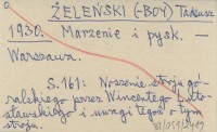 ŻELEŃSKI Tadeusz Boy- 1940 (?) [O Kazimierzu Tetmajerze i jego śmierci.]