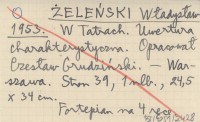 ŻELEŃSKI Władysław 1953 W Tatrach. Uwertura charakterystyczna. Opracował Czesław Grudziński.