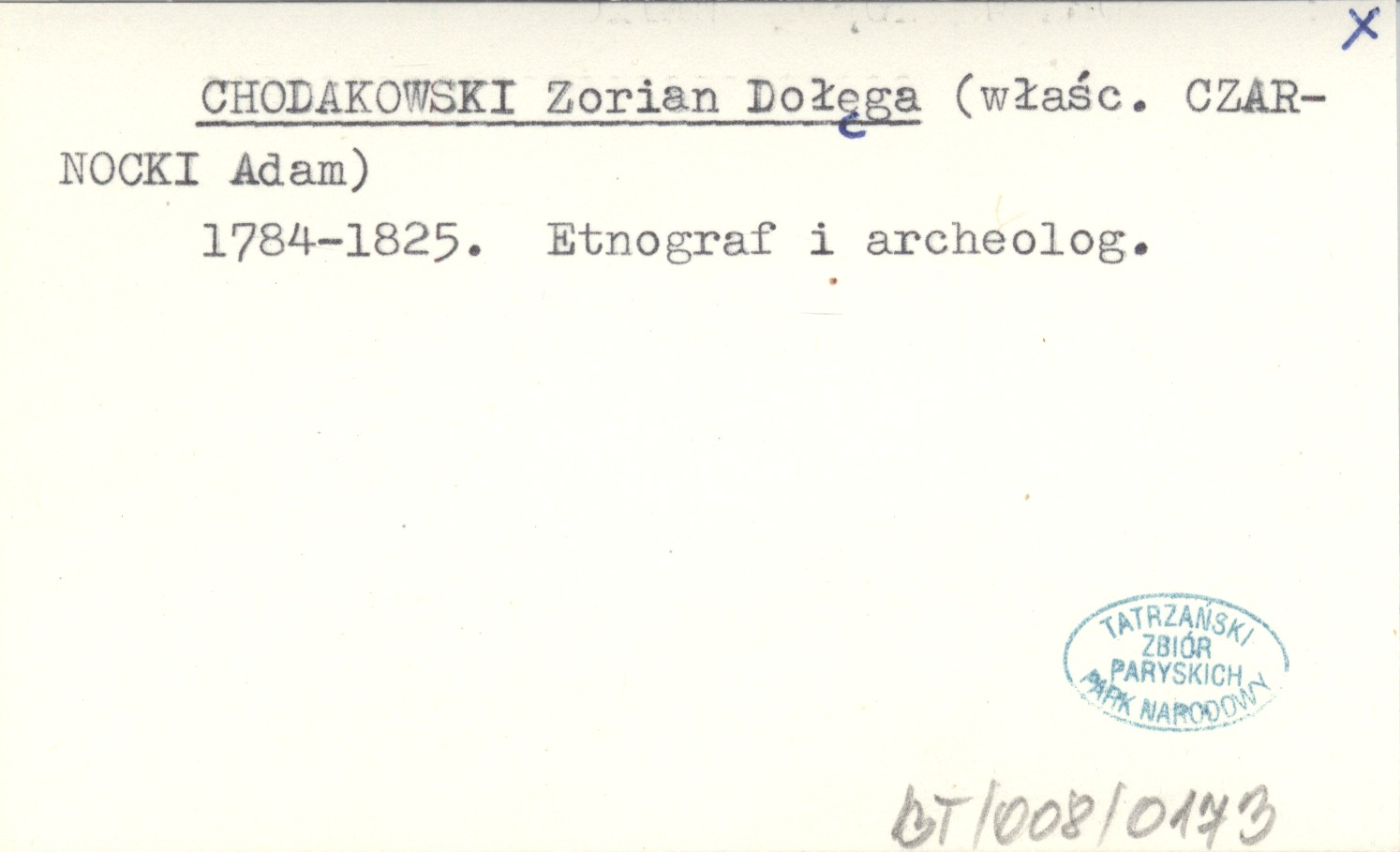 Właśc. CZARNOCKI Adam. 1784-1825. Etnograf i archeolog.