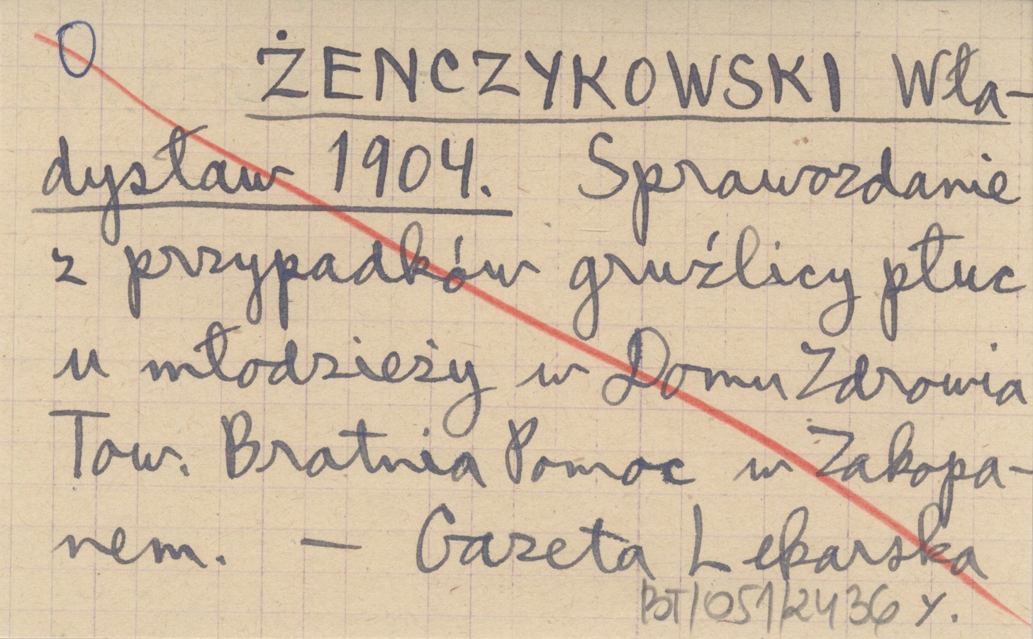 ŻENCZYKOWSKI Władysław 1904 Sprawozdanie z przypadków gruźlicy płuc u młodzieży w Domu Zdrowia Tow. Bratnia Pomoc w Zakopanem.