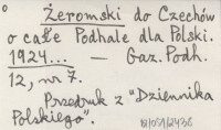 Żeromski do Czechów o całe Podhale dla Polski. 1924...