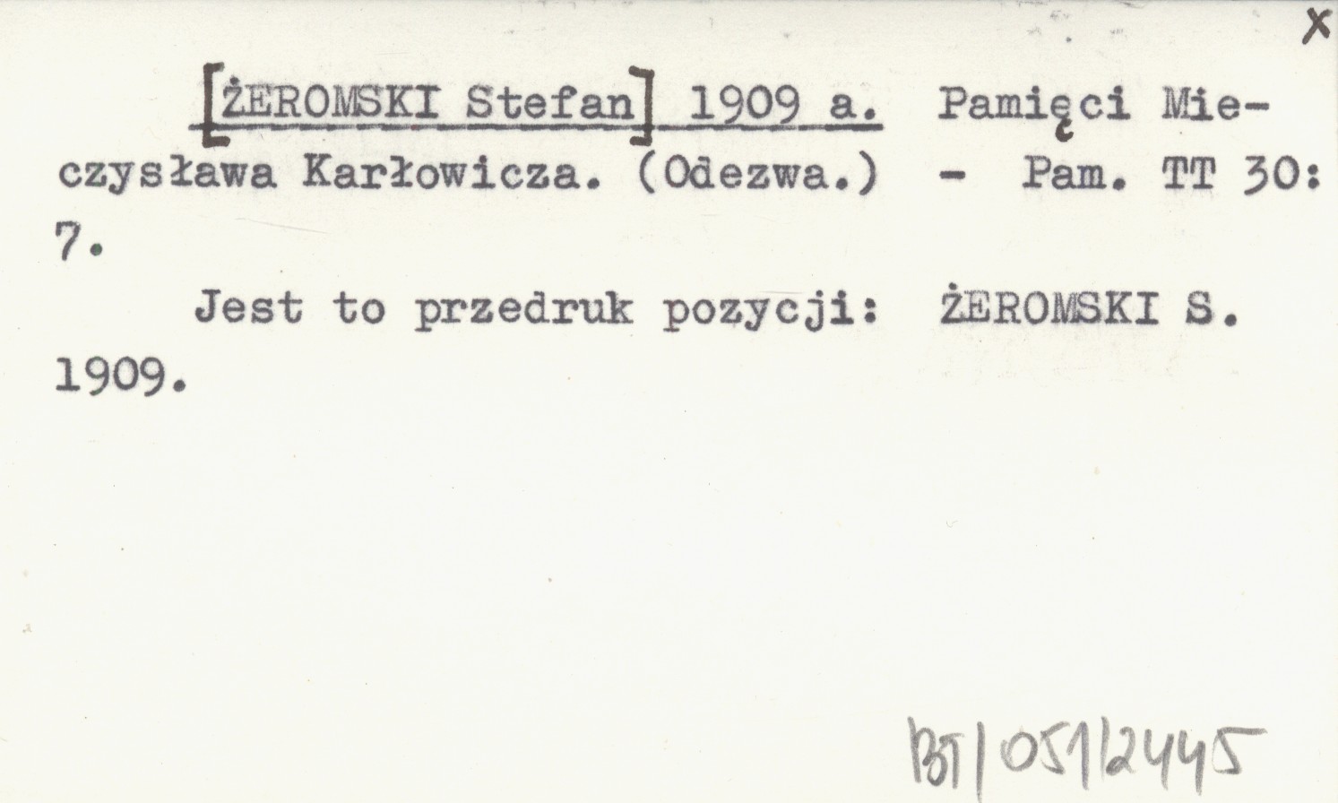 [ŻEROMSKI Stefan] 1909 a Pamięci Mieczysława Karłowicza. (Odezwa.)