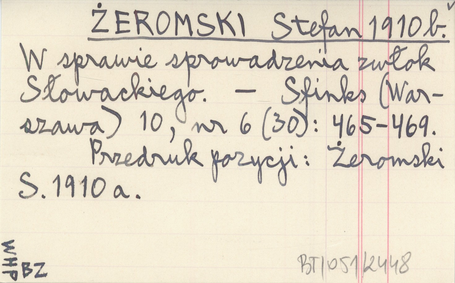 ŻEROMSKI Stefan 1910 b W sprawie sprowadzenia zwłok Słowackiego.