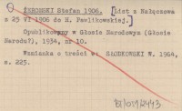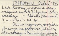 ŻEROMSKI Stefan 1910 b W sprawie sprowadzenia zwłok Słowackiego.