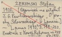 ŻEROMSKI Stefan 1910 [Odpowiedź na artykuł J. G. Pawlikowskiego "O prochy Słowackiego" w Lamusie.]