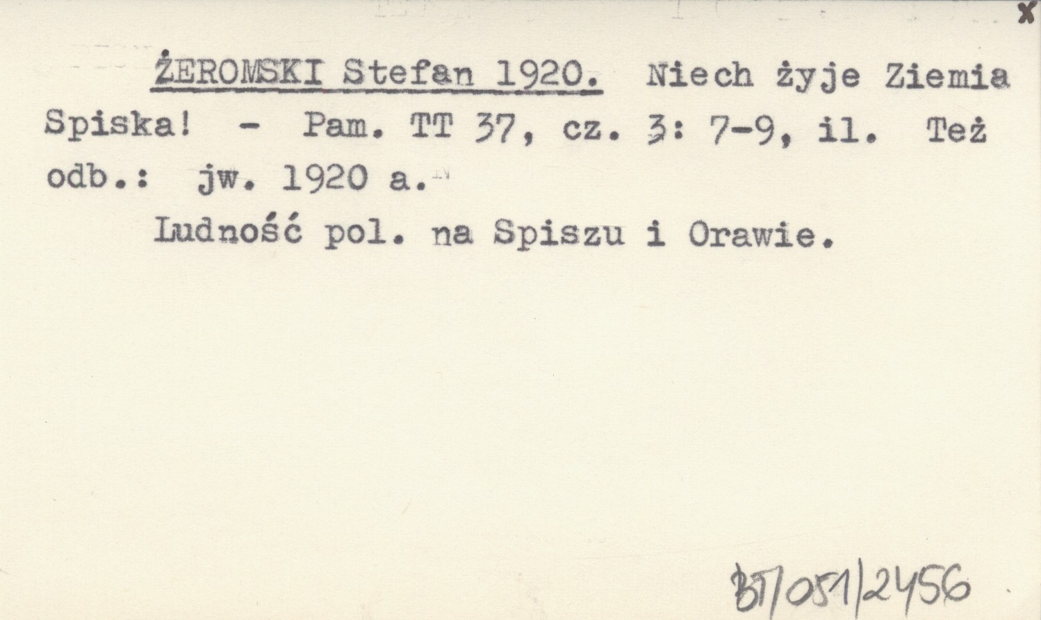 Pamiętnik Towarzystwa Tatrzańskiego, 37, cz. 3: 7-9, il. Ludność polska na Spiszu i Orawie. Też odb.: jw. 1920 a.