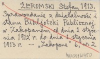 ŻEROMSKI Stefan 1913 Sprawozdanie z działalności i stanu Bibljoteki Publicznej w Zakopanem od dnia 1 stycznia 1912 r. do dnia 1 stycznia 1913 r.