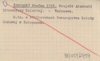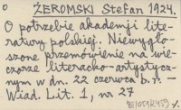 ŻEROMSKI Stefan 1918 Projekt Akademii Literatury Polskiej.