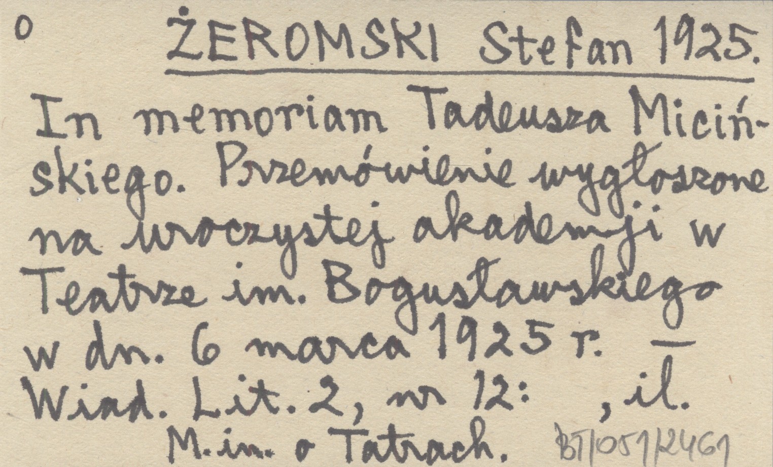 ŻEROMSKI Stefan 1925 In memoriam Tadeusza Micińskiego. Przemówienie wygłoszone na uroczystej akademji w Teatrze im. Bogusławskiego w dn. 6 marca 1925 r.