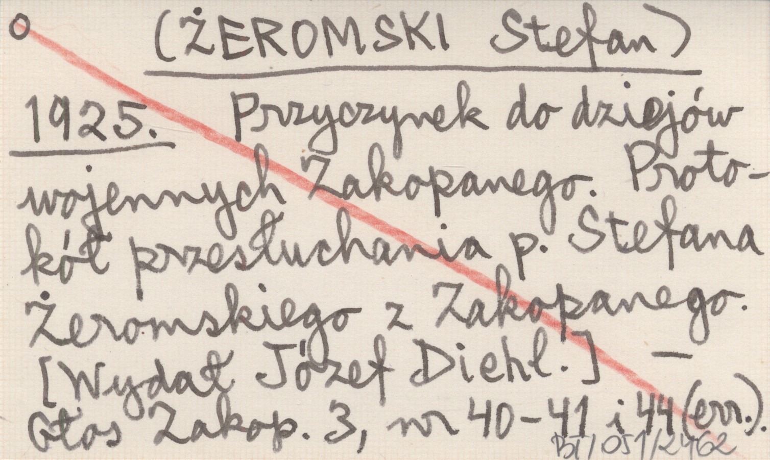 [ŻEROMSKI Stefan] 1925 Przyczynek do dziejów wojennych Zakopanego. Protokół przesłuchania p. Stefana Żeromskiego z Zakopanego.