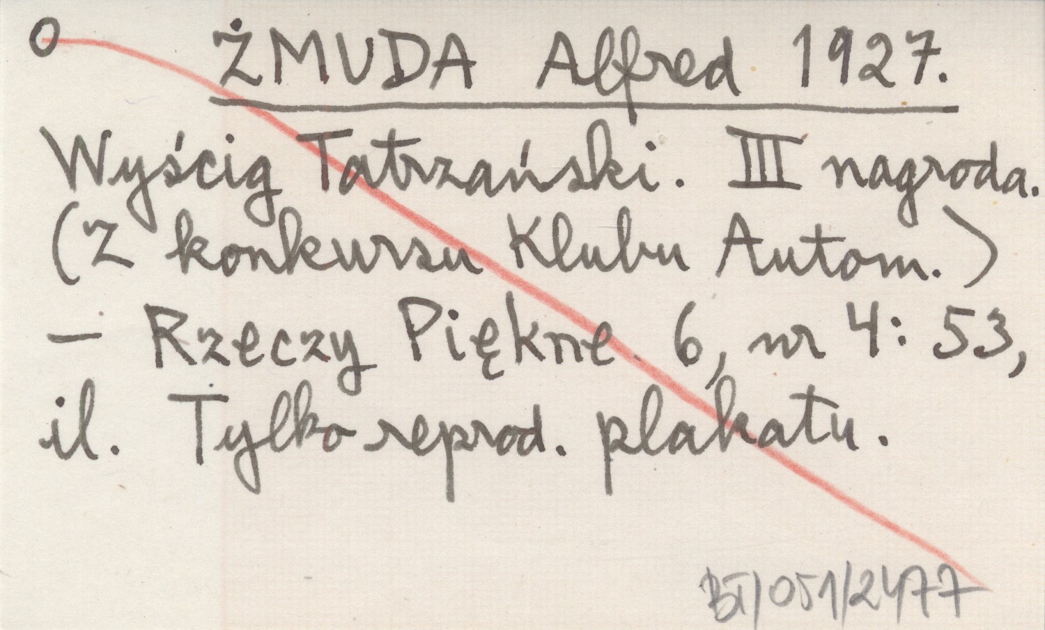 ŻMUDA Alfred 1927 Wyścig Tatrzański. III nagroda. (Z konkursu Klubu Autom.).