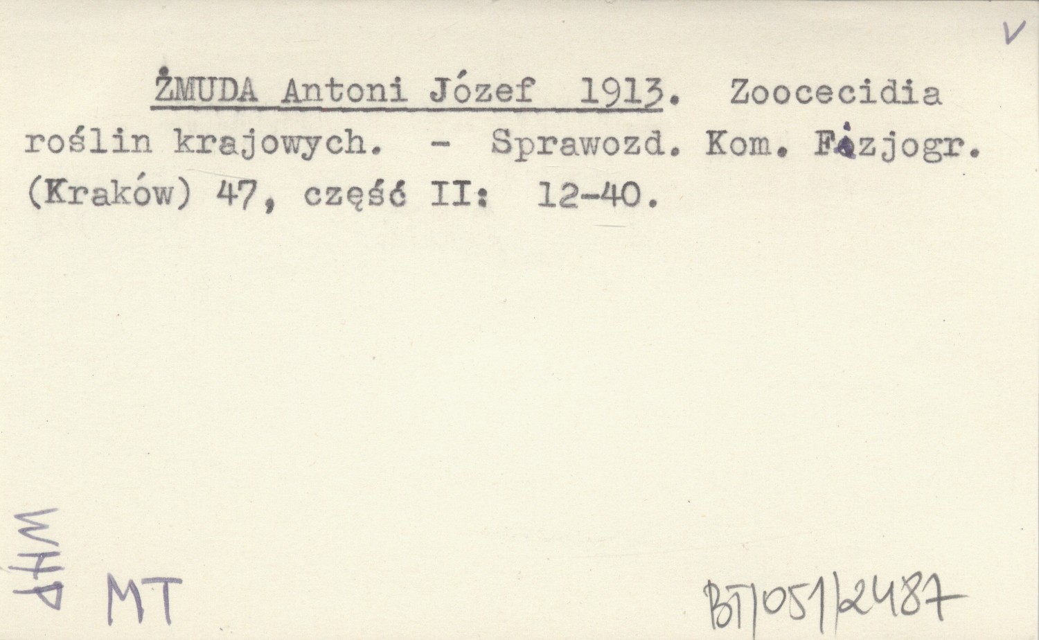 ŻMUDA Antoni Józef 1913 Zoocecidia roślin krajowych.