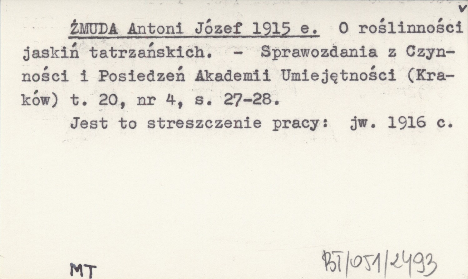 ŻMUDA Antoni Józef 1915 e O roślinności jaskiń tatrzańskich.