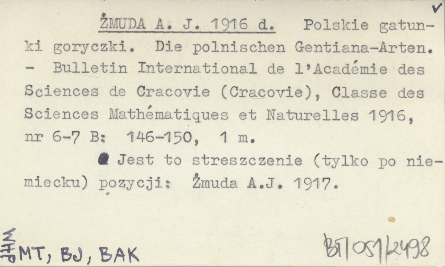 ŻMUDA A. J. 1916 d Polskie gatunki goryczki. Die polnischen Gentiana-Arten.