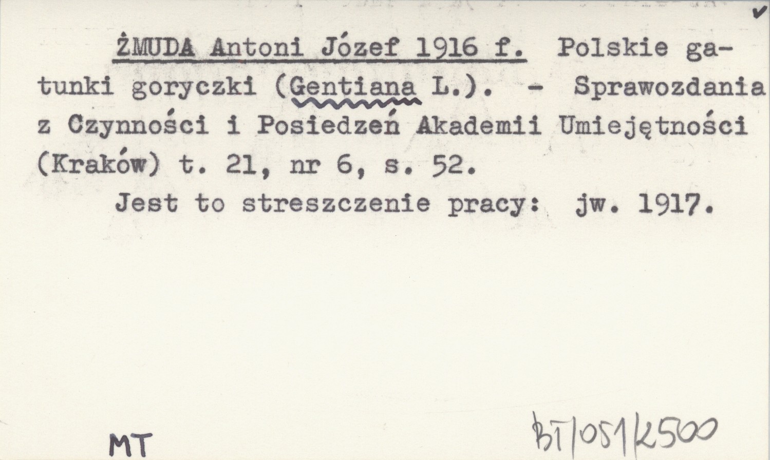 ŻMUDA Antoni Józef 1916 f Polskie gatunki goryczki (Gentiana L.).