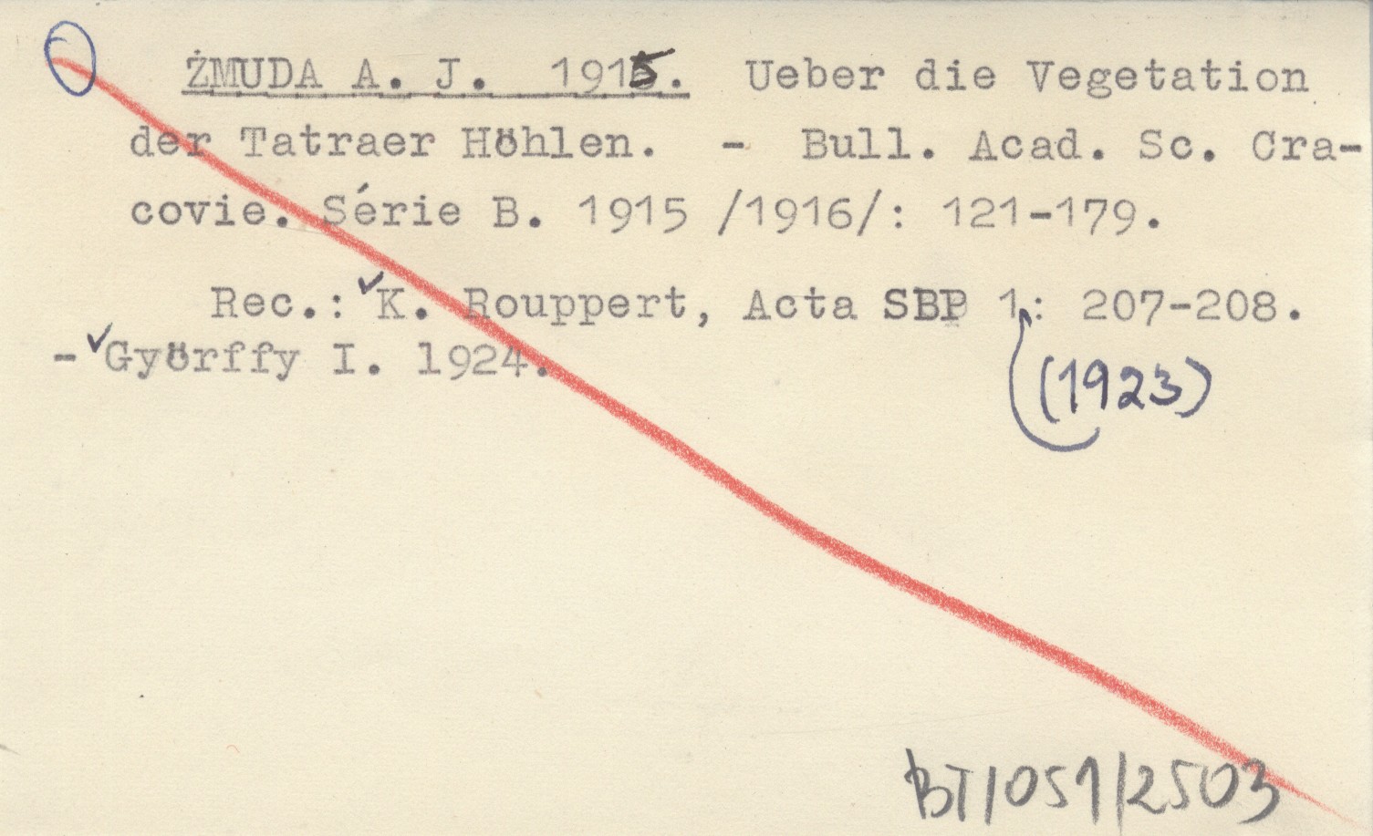 Bulletin de l'Academie des Sciences de Cracovie, Sér. B 1915 (1916): 121-179. REC: K. ROUPPERT, Acta Societatis Botanicorum Poloniae 1 (1923): 207-208 ; GYŐRFFY I.: 1924 ; ROUPPERT K. 1918 b ;