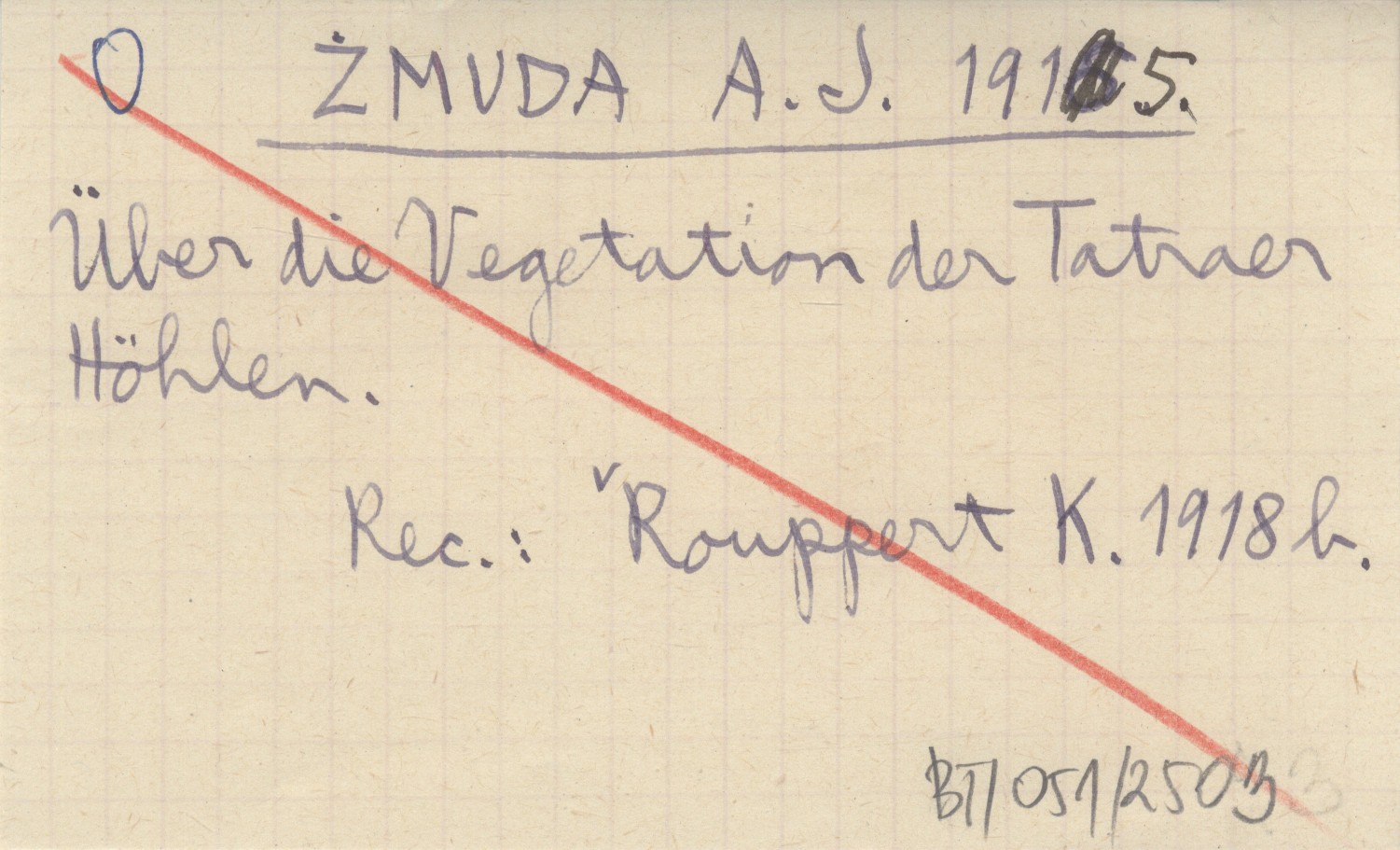 ŻMUDA A. J. 1915 Ueber die Vegetation der Tatraer Höhlen.