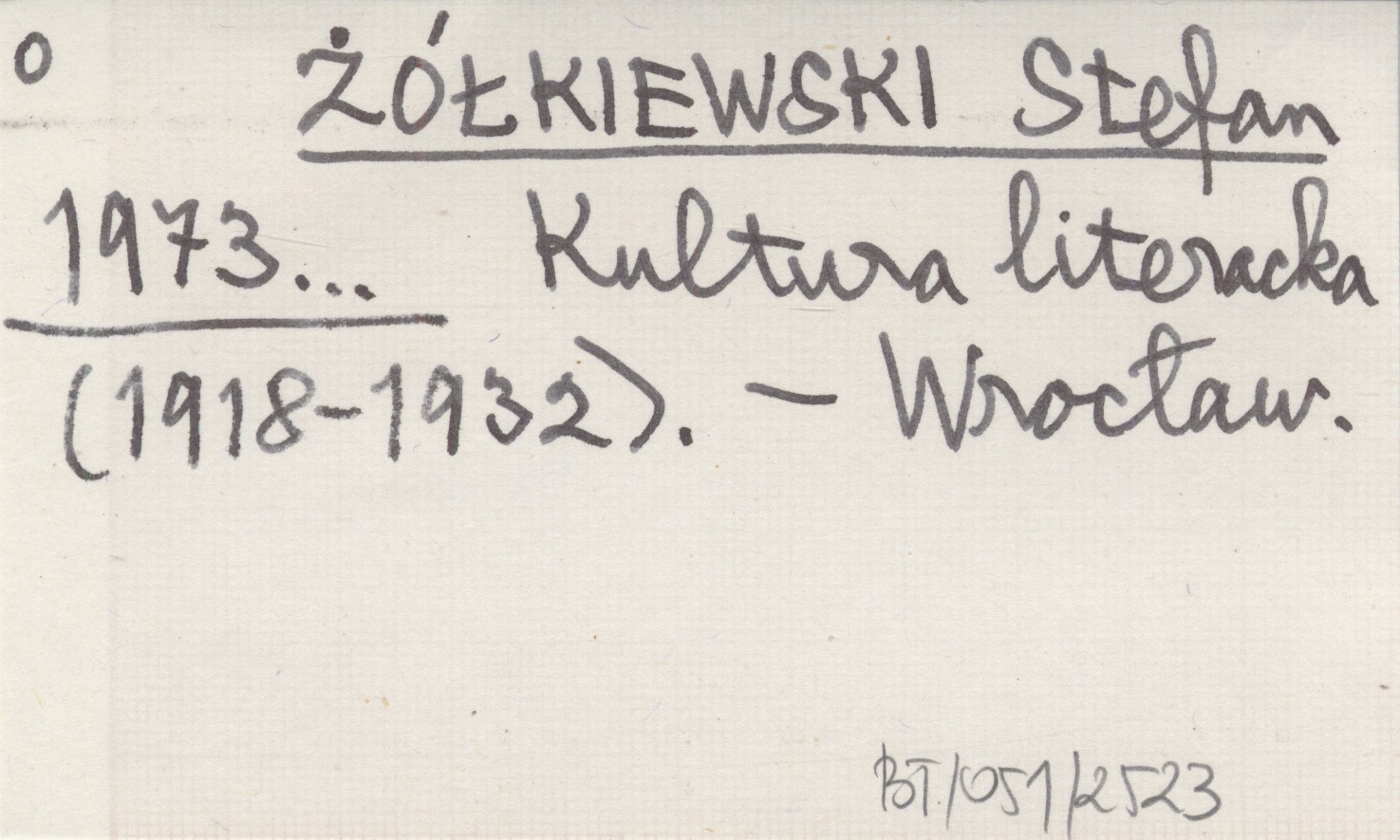 ŻÓŁKIEWSKI Stefan 1973... Kultura literacka (1918-1932).