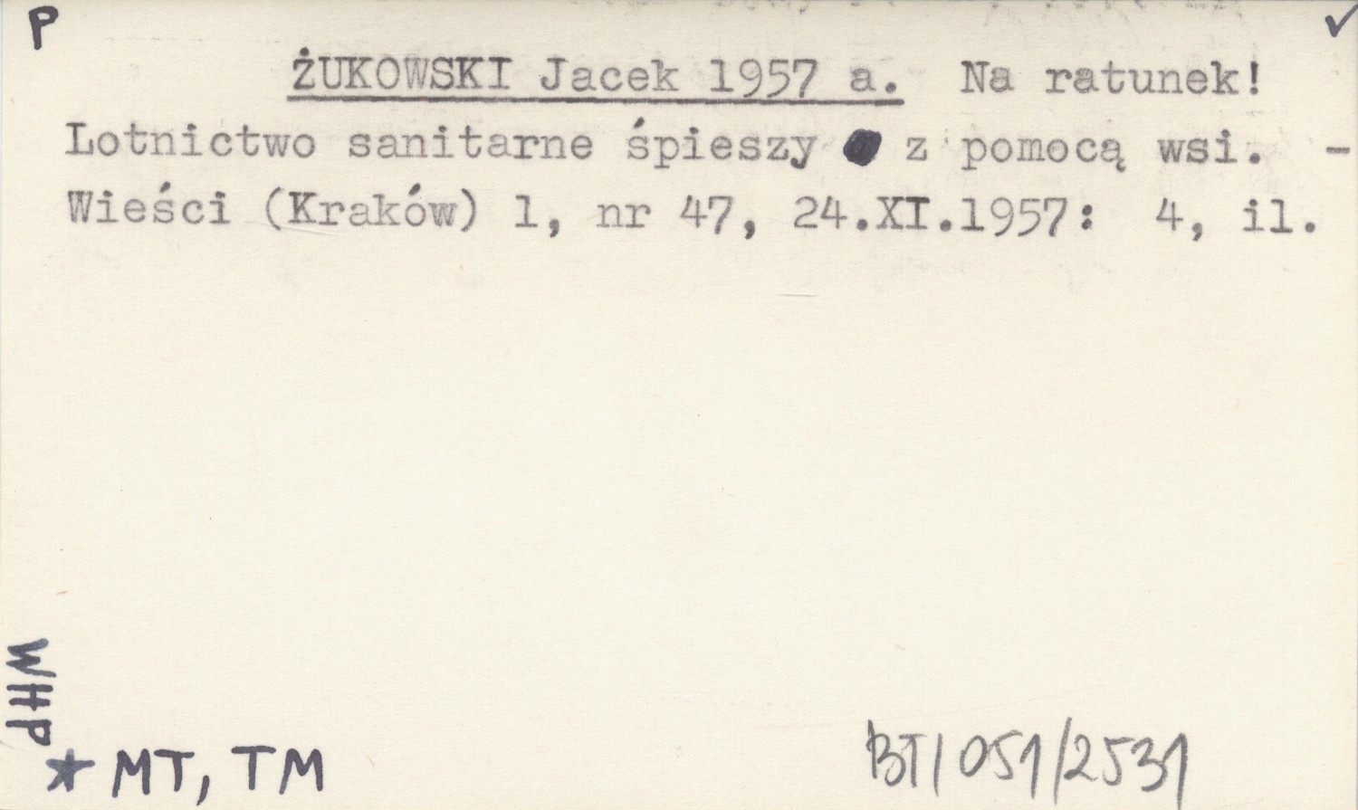ŻUKOWSKI Jacek 1957 a Na ratunek! Lotnictwo sanitarne śpieszy z pomocą wsi.