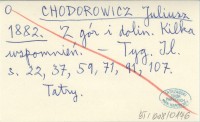 CHODOROWICZ Juliusz 1882 Z gór i dolin. Kilka wspomnień.