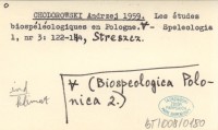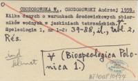CHODOROWSKA W. CHODOROWSKI, Andrzej. ; 1959 Bathynella natans ssp. natans Vejdovský 1882 (sensu Jakobi 1954 et Kulhavý 1957) w Tatrach. (Biospeologica Polonica 3).