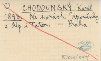 CHODOUNSKÝ Karel 1893 Na horách. Upomínky z Alp i Tater.