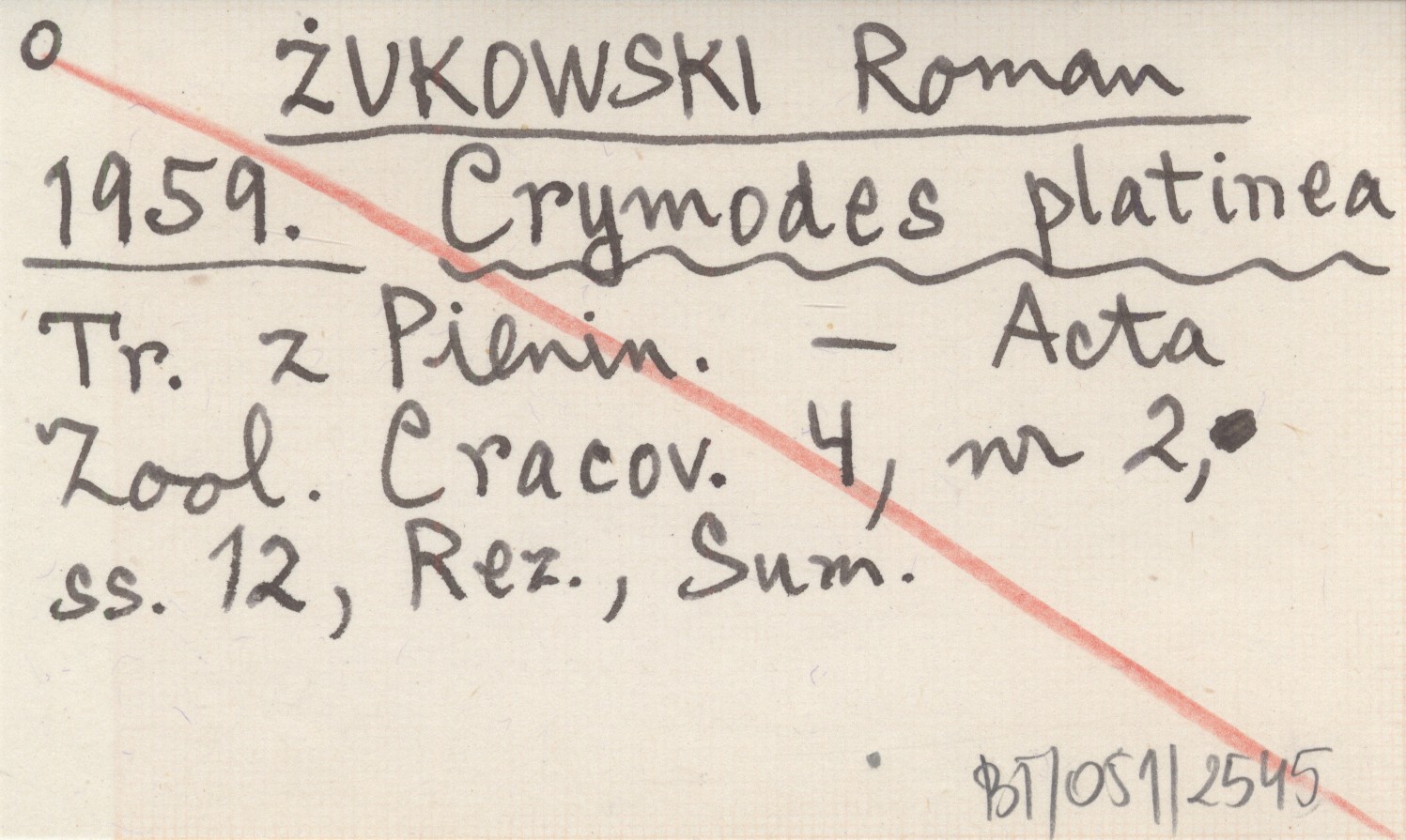 ŻUKOWSKI Roman 1959 Crymodes platinea Tr. z Pienin.