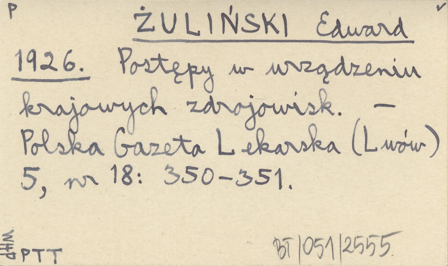 ŻULIŃSKI Edward 1926 Postępy w urządzeniu krajowych zdrojowisk.