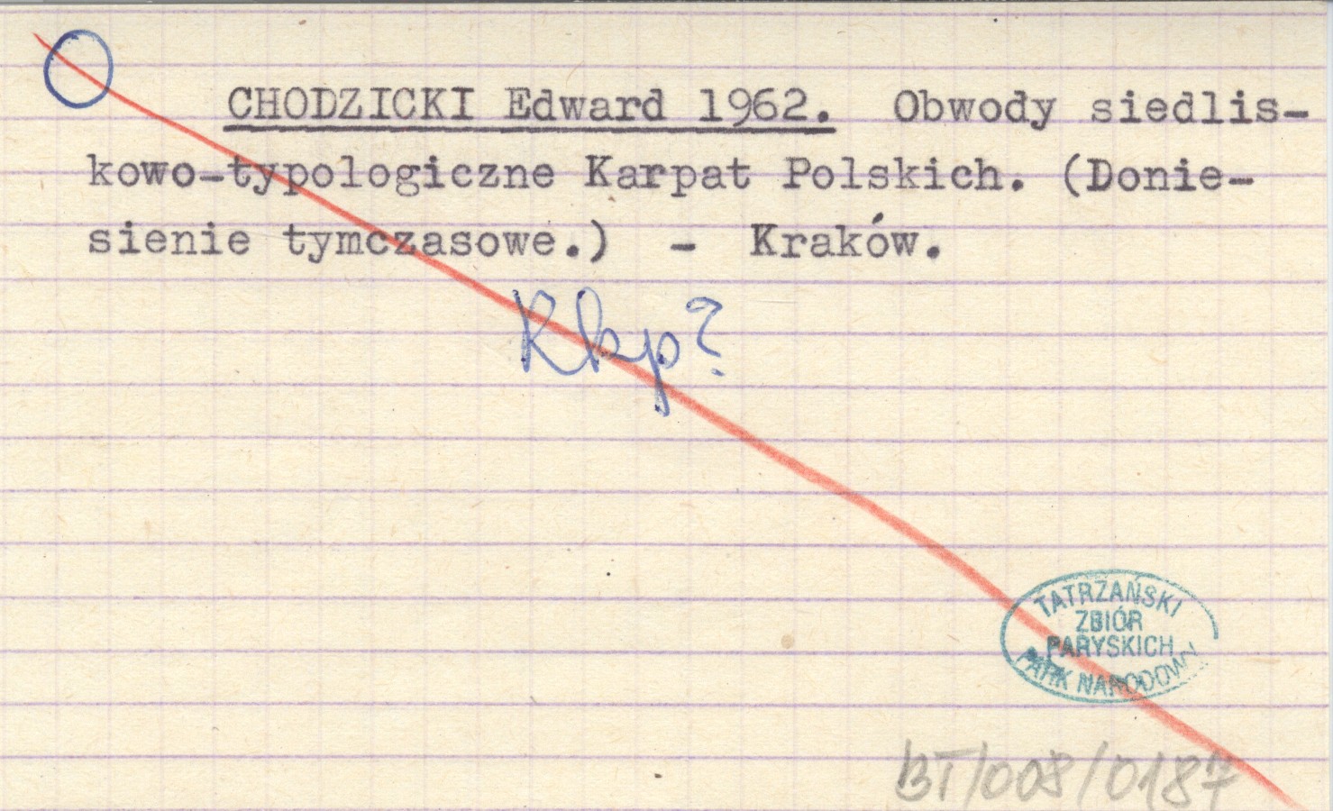 CHODZICKI Edward 1962 Obwody siedliskowo-typologiczne Karpat Polskich. (Doniesienie tymczasowe).