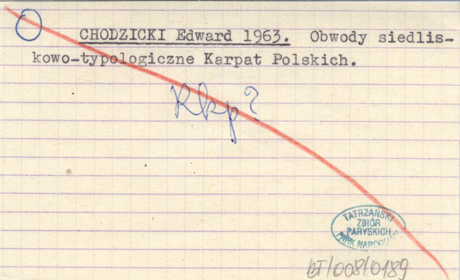 CHODZICKI Edward 1963 Obwody siedliskowo-typologiczne Karpat Polskich.