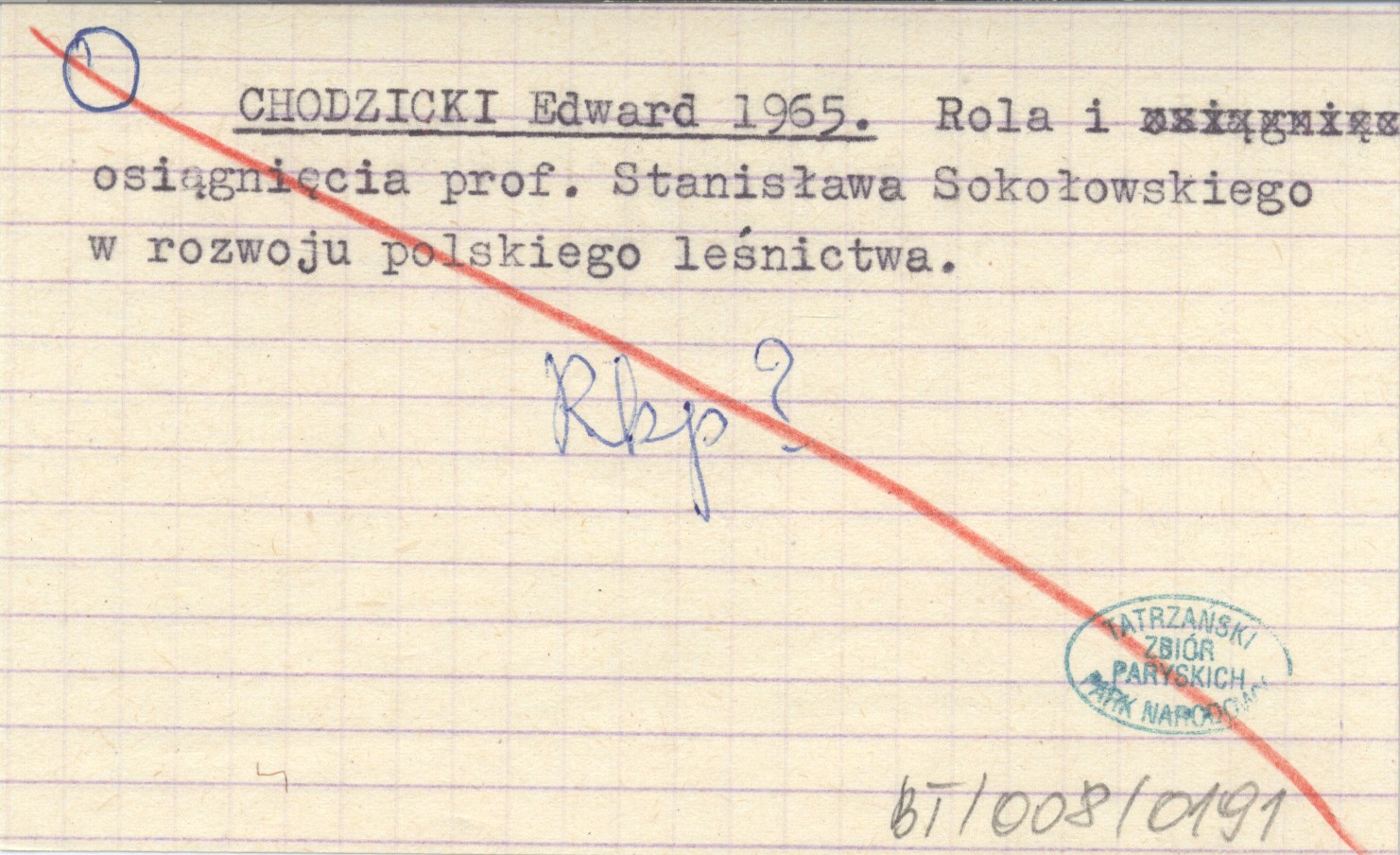 CHODZICKI Edward 1965 Rola i osiągnięcia prof. Stanisława Sokołowskiego w rozwoju polskiego leśnictwa.
