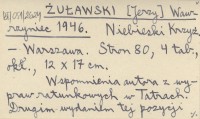 ŻUŁAWSKI [Jerzy] Wawrzyniec 1946 Niebieski Krzyż.