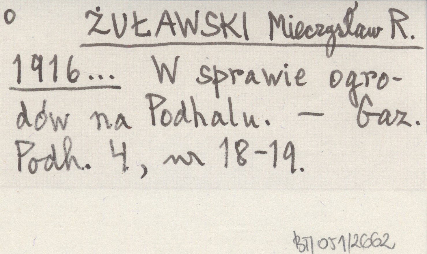 ŻUŁAWSKI Mieczysław R. 1916... W sprawie ogrodów na Podhalu.