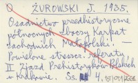 ŻUROWSKI J. 1935 Osadnictwo przedhistoryczne północnych zboczy Karpat zachodnich Małopolski.