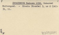 ŻYCHIEWICZ Tadeusz 1958 Oskarowi Kolbergowi.