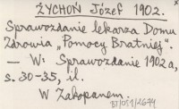 ŻYCHOŃ Józef 1902 Sprawozdanie lekarza Domu Zdrowia "Pomocy Bratniej".