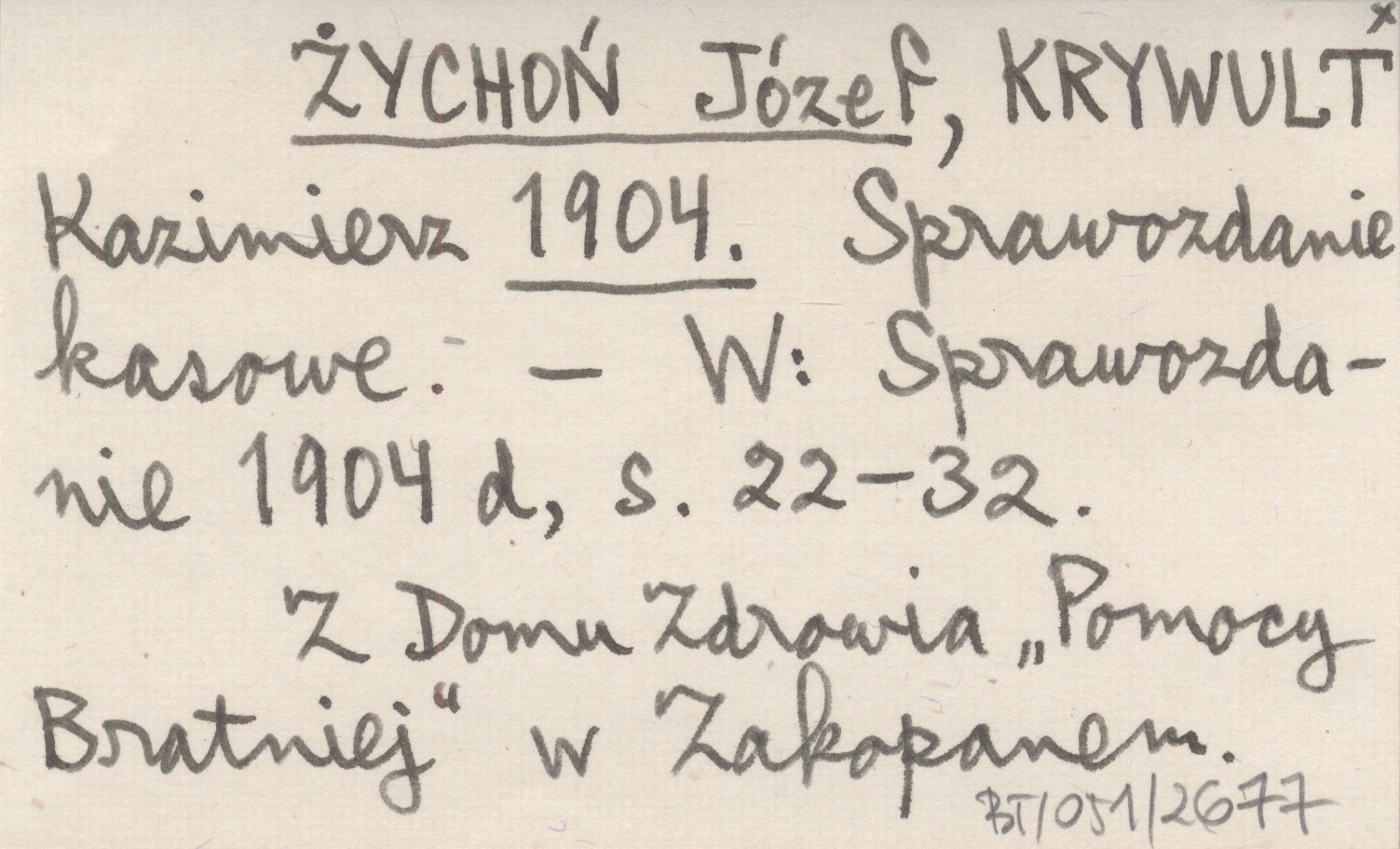 Sprawozdanie 1904 d , S. 22-32. Z Domu Zdrowia "Pomocy Bratniej" w Zakopanem.