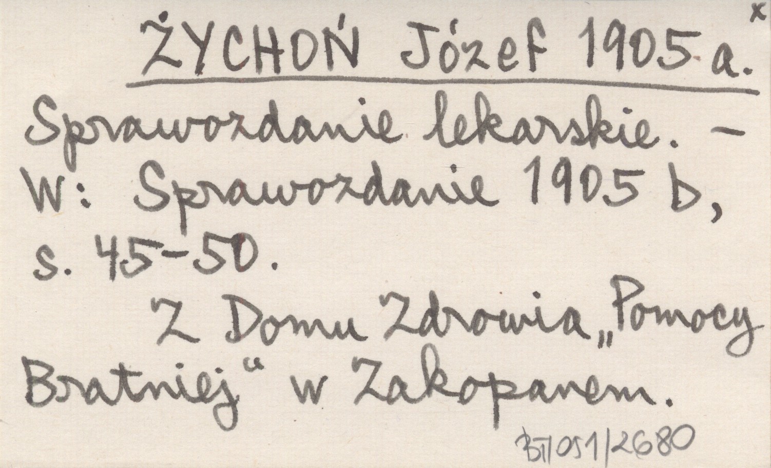 Sprawozdanie 1905 b , S. 45-50. Z Domu Zdrowia "Pomocy Bratniej" w Zakopanem.