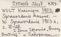 ŻYCHOŃ Józef KRYWULT, Kazimierz. ; 1903 Sprawozdanie kasowe.