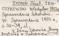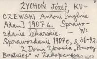 ŻYCHOŃ Józef KUCZEWSKI, Antoni [mylnie Adam]. ; 1907 a Sprawozdanie lekarskie.