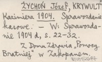 ŻYCHOŃ Józef KRYWULT, Kazimierz. ; 1904 Sprawozdanie kasowe.