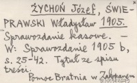 ŻYCHOŃ Józef ŚWIEPRAWSKI, Władysław. ; 1905 Sprawozdanie kasowe.