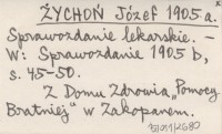 ŻYCHOŃ Józef 1905 a Sprawozdanie lekarskie.