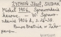 ŻYCHOŃ Józef SIUDAK, Michał. ; 1906 Sprawozdanie kasowe.