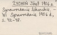 ŻYCHOŃ Józef 1906 a Sprawozdanie lekarskie.