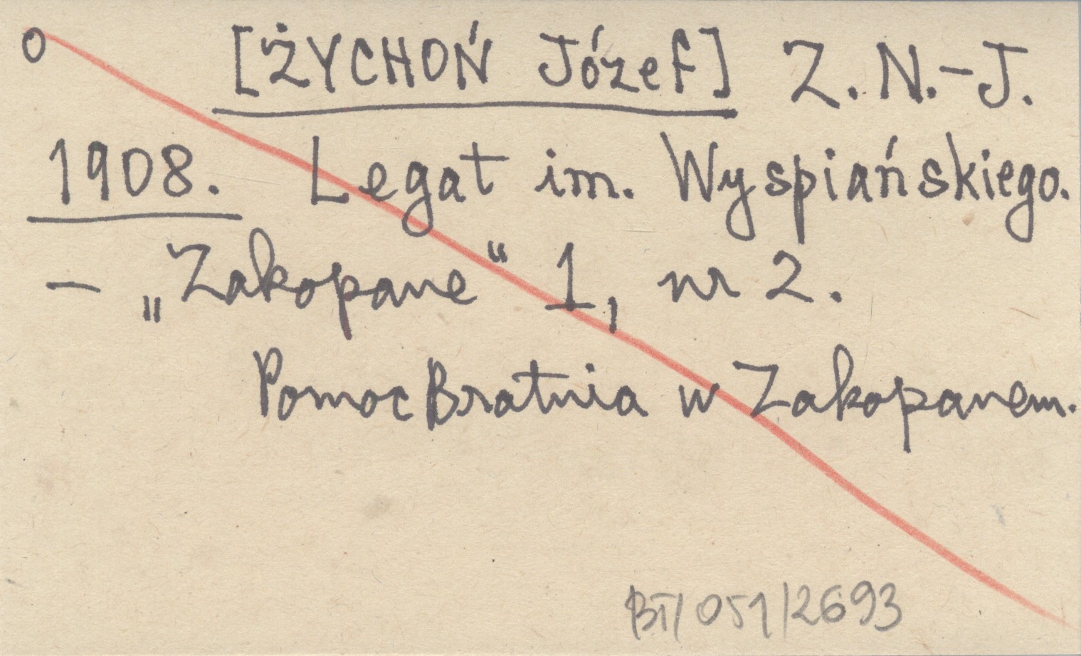 Z. N.-J. [ŻYCHOŃ Józef] 1908 Legat im. Wyspiańskiego.