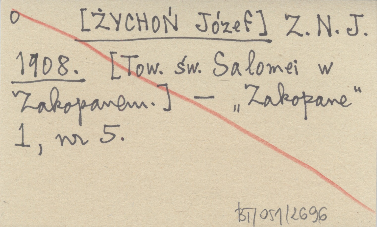 Z. N. J. [ŻYCHOŃ Józef] 1908 [Tow. św. Salomei w Zakopanem.]