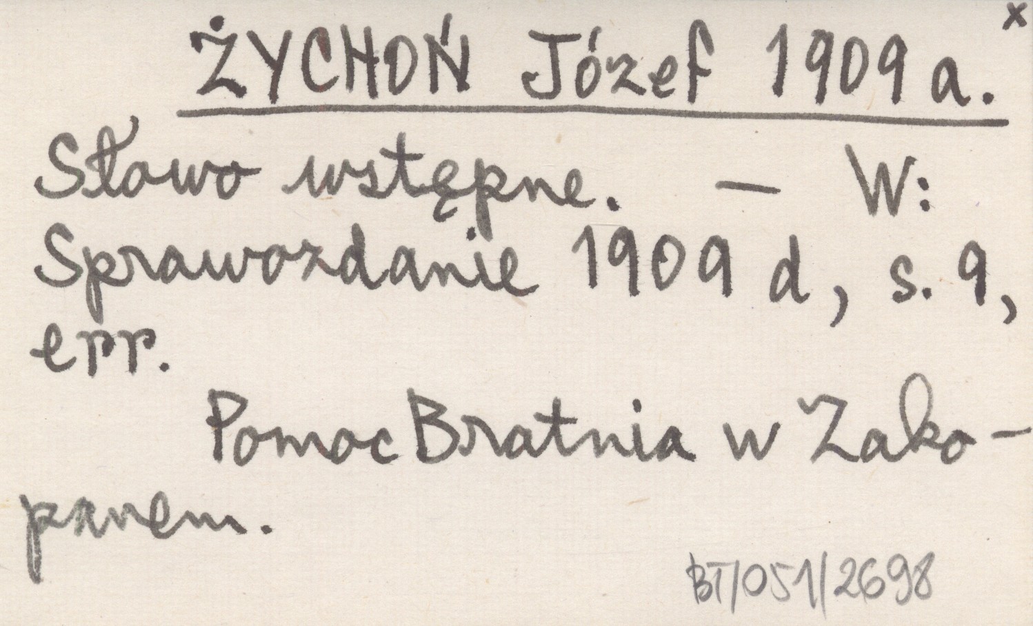 Sprawozdanie 1909 d , S. 9, err. Pomoc Bratnia w Zakopanem.