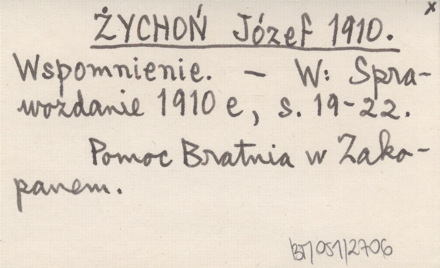 Sprawozdanie 1910 e , S. 19-22. Pomoc Bratnia w Zakopanem.
