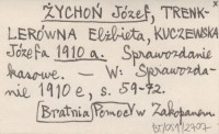 ŻYCHOŃ Józef TRENKLERÓWNA, Elżbieta. ; KUCZEWSKA, Józefa. ; 1910 a Sprawozdanie kasowe.